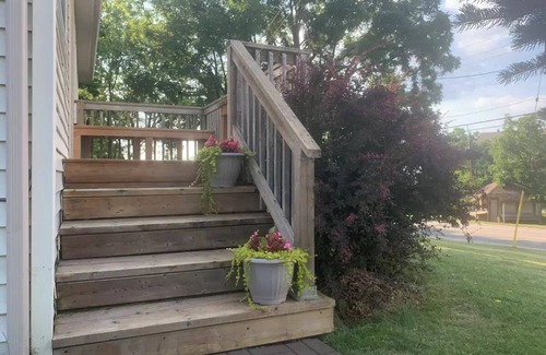 Comfortable and clean 2 bedroom unit in the front part of our home (we live in the back). Each bedroom has a queen size bed with bamboo mattress, alarm clock (that will also charge most phones) and ceiling fan. The soaker tub is perfect for a relaxing bath or you may enjoy a luxury rainfall showering experience in the large walk in shower equipped with a built in bench and grab bars. Enjoy the sunset (or sunrise) from the front porch during the summer months.
