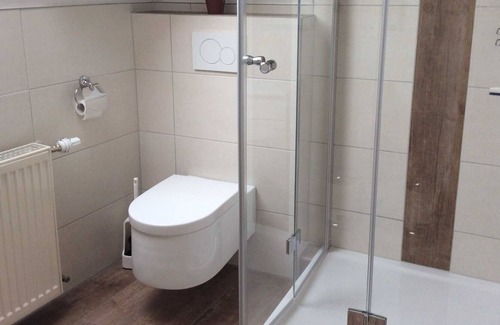 Nice cozy and fully furnished apartment with private entrance, 2 bedrooms, shower toilet, kitchen with dishwasher, kettle, coffee machine and toaster. A large garden with mature trees, pond and barbecue hut invite you to relax. The laundry is provided. Central location, no through traffic. All shopping locally .Bounding dog on pet