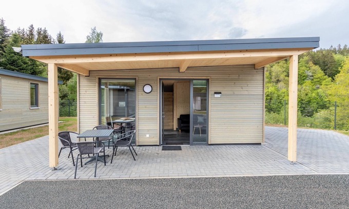 This cozy bungalow for two is nestled just 50 m from the tranquil shores of Kronenburger See in Hallschlag, offering a peaceful lakeside escape. The ground-floor layout includes a bright living room with seating and dining area, an open kitchen equipped with modern appliances, and a private terrace for relaxed outdoor moments. A twin bedroom and bathroom with shower complete the comfortable setup. Guests can enjoy a range of amenities including a baby bath, cot, children’s bed, high chair, and outdoor play equipment like a swing set, sandpit, and table tennis. For added comfort, a sauna, washing machine, and electric bikes are available for a small fee. Secure parking and garden furniture make it easy to settle in and enjoy the surroundings. Located in the heart of the Eifel region, this bungalow is ideal for couples seeking nature, relaxation, and adventure. With Kronenburger See and its beach just steps away, plus hiking trails and scenic cycling routes nearby, it’s a perfect base for exploring the volcanic landscapes and charming villages of the Eifel.