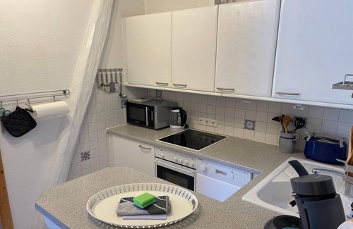 Set in the quiet village of Krusenhagen, just 7 km from the historic port town of Wismar, this bright and practical 1st-floor apartment is ideal for families seeking a peaceful coastal escape. The living room offers a cozy seating area, dining table, and TV, while the well-equipped kitchen features electric hot plates, oven, pad coffee machine, combination microwave, toaster, and dishwasher—perfect for easy home-cooked meals. Sleeping arrangements include a double bedroom and a second bedroom with two single loft beds—great for kids or teens. The bathroom is fitted with a shower, toilet, washbasin, hairdryer, and heating for year-round comfort. Outside, enjoy a private garden with furniture, sandpit, play equipment, and a garden shed for extra storage. A high chair is provided, and pets are welcome too. With a bakery, restaurants, and public transport all within 6 km, and Hamburg Airport 100 km away, this spot blends countryside charm with practical convenience.