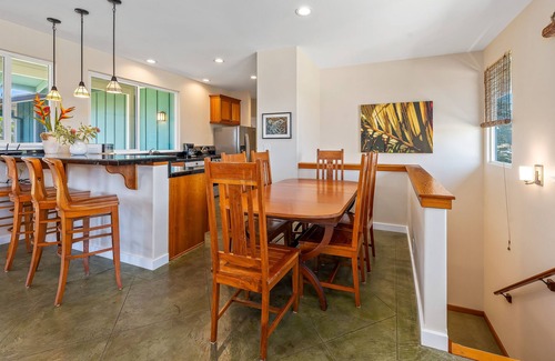 You can't beat the location: Kuau Makai is just a few steps away from Mama's Beach in a quaint and quiet neighborhood where it is still a pleasure to walk about. The house is on 2 levels: there are 2 bedrooms and 1 bathroom downstairs and another bedroom with bathroom attached upstairs. Gourmet kitchen, dining and living room are also upstairs and so is the lanai with a partial ocean view, perfect to sit in the evenings just shooting the breeze.