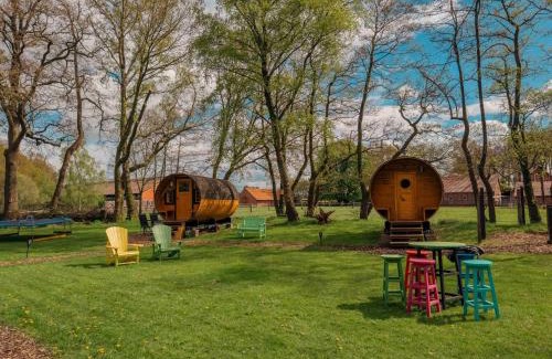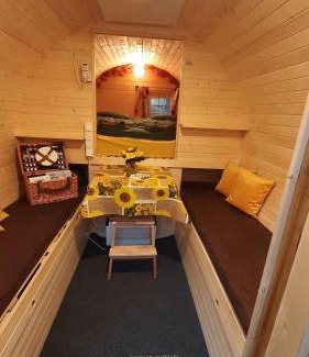 Providing a garden, Kuhle Auszeit - Fass Sonnenblume features accommodations in Lastrup. This property offers access to a terrace, free private parking, and free Wifi. The property provides a children's playground and outdoor furniture. The vacation home includes a fully equipped kitchenette with a toaster and a fridge, as well as a coffee machine. The accommodation is non-smoking. Bremen Airport is 47 miles away.