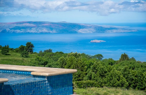 Relax in the luxury and privacy of this quiet neighborhood that is still convenient to modern amenities and restaurants. This location is a little slice of heaven, a different experience from other rentals on Maui. Soak in unobstructed ocean and outer Island views as you gaze out at the green rolling pastures. Open bedroom sliders to step directly onto the patio lanai and take a dip in the pool and heated spa. Electric blackout shades in the bedrooms. Please note: We allow four guests maximum per stay. Due to the ideal location AC is not necessary.