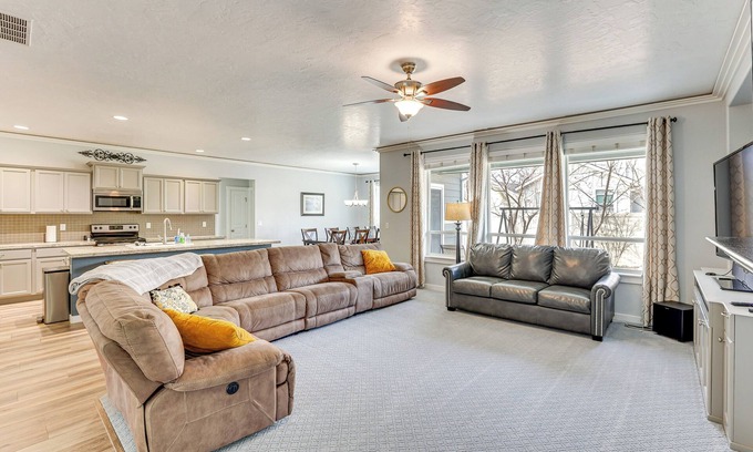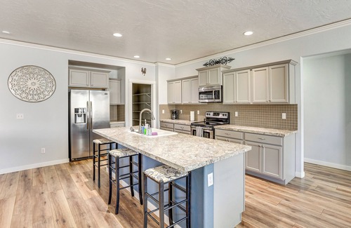 Gather your loved ones for a retreat outside the city at this Kuna vacation rental. The house boasts 5 bedrooms, 2.5 bathrooms, a full kitchen for meals made easy, and a shady back patio for barbecues. Plus, the nature lovers in your crew can discover the state parks, lakes, and conservation areas scattered throughout the area. No matter what's on your itinerary, this abode promises to provide a comfortable and convenient base!