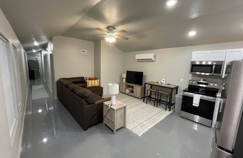 Keep it simple at this peaceful and centrally located 2 bedroom home. Quiet neighborhood, walking distance to the local food trucks, 3-minute drive to shopping and restaurants and 3-minute drive to Historic Downtown Sallisaw. This home comes with everything you need for a 2-night stay or a 1 month stay. 2 bedrooms with comfortable queen beds in both bedrooms. A comfy couch to lounge on and a queen blow up mattress if you have more than a few people staying.