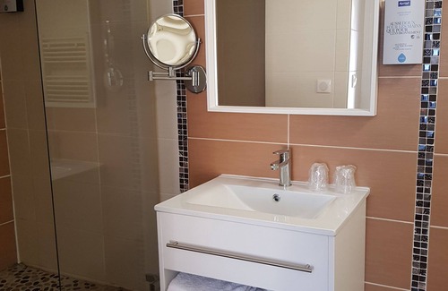 Kyriad Lyon Est – Saint Quentin Fallavier offers 50 air-conditioned accommodations, which are accessible via exterior corridors and feature complimentary bottled water and coffee/tea makers. Tempur-Pedic beds feature premium bedding. A pillow menu is available. 43-inch flat-screen televisions come with premium satellite channels. Bathrooms include bathtubs or showers and hair dryers.