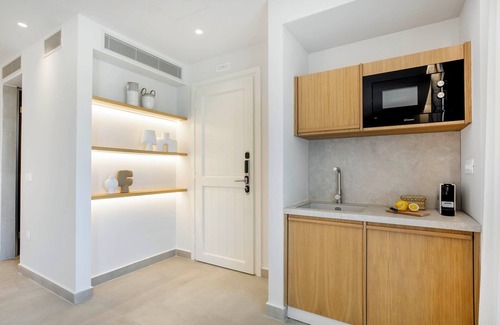 KYTHNOS BLUE - Suite 1 accommodates 1 double bed, 2 built-in single beds, a bathroom with a shower, a kitchenette with a mini fridge, a flat-screen TV, and α safe. It is fully air conditioned with hot water 24 hours and a comfortable balcony overlooking the marina of Loutra.
