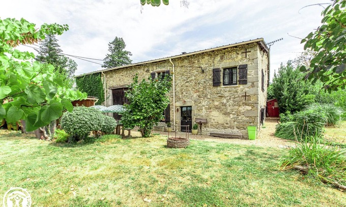 Come stay in this charming cottage with its beautiful stone walls and large, enclosed grounds beautifully planted with trees and flowers. A true nature vacation while being close to Thiers for amenities, museums, and entertainment. The owner is very environmentally friendly and has favored natural materials for the renovation of the house. You can enjoy the large adjoining grounds with its terrace, Nordic spa, and numerous flower-filled and tree-lined areas. On the ground floor, you will find: - a large living room with a kitchen and dining room with a wood-burning stove - a second area: a large living room with a bar and reading corner - a bedroom with a double bed - a separate toilet On the first floor: - a bedroom with a double bed - a bedroom with a double bed - a bathroom Toilet available outside in a cabin.