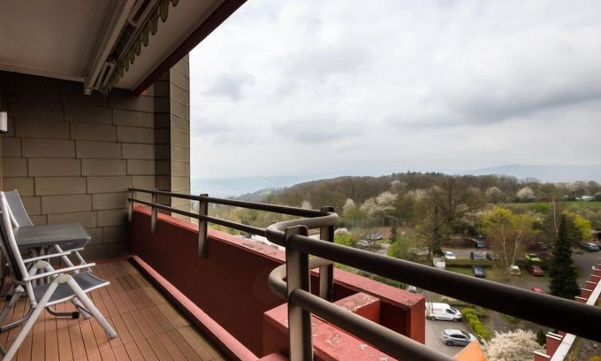 "Löwenzahn (A808)", 2-room apartment 56 m2 on 8th floor, west facing position. Very beautiful and modern furnishings: living/dining room with 1 double sofabed (160 cm, length 200 cm), satellite TV (flat screen). Exit to the balcony. 1 room with 1 double bed (2 x 100 cm, length 200 cm). Kitchenette (oven, dishwasher, 4 induction hot plates, toaster, kettle, electric coffee machine). Shower/WC. Balcony furniture. Very beautiful view of the countryside. Facilities: Internet (WiFi, free). Please note: non-smokers only. Smoke alarm. Bookings accepted for holiday purposes only.