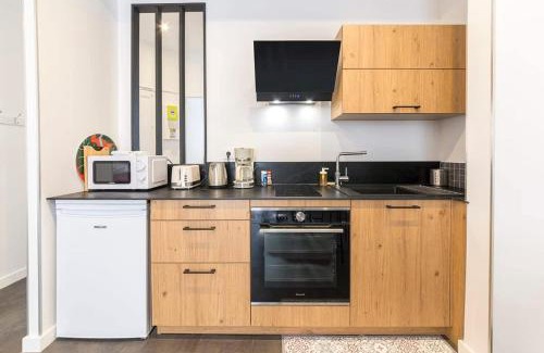 - 2 rooms, chic and modern, 400 m from the station and 5 min from the city center, internet
