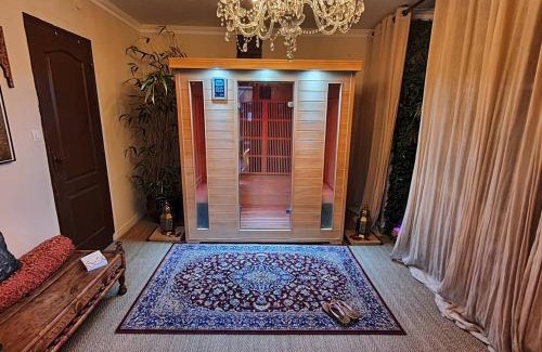 A recently renovated guest house, L'écrin de Rûmi offers accommodations in Vaires-sur-Marne. With garden views, this accommodation offers a terrace. Guests have access to a sauna and hot tub. The guest house consists of 1 bedroom, a living room, a fully equipped kitchen with a stovetop and a coffee machine, and 2 bathrooms with a walk-in shower and bathrobes. Towels and bed linen are offered in the guest house. The property has an outdoor dining area. Guests at the guest house will be able to enjoy activities in and around Vaires-sur-Marne, like hiking and walking tours. Val d'Europe RER Station is 8.3 miles from L'écrin de Rûmi, while Disneyland Paris is 10 miles from the property. Paris - Charles De Gaulle Airport is 14 miles away.