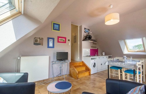 This vacation rental is on the 1st floor of a house, with independent access by an outside staircase. Comfortable, it has been well fitted out in its 30 m². This cottage can accommodate 2 people and offers a bright living room with kitchen / living room / lounge, 1 bedroom (1 bed 140) and a bathroom with toilet. Outside: you will enjoy a private terrace and private parking (in front of the cottage). Unfenced garden shared with the owner and the other gite. Gite located near guest house 56G56324 and adjoining gite 56G1392 (2 people) located on the ground floor. Come and discover Belz and the Ria d'Etel on foot or by bicycle, through numerous marked and marked trails. Here, the landscapes are magnificent: small coves, islands and islets, typical ports... Not to be missed during your stay: the island of Saint Cado accessible by a small stone bridge. For your lazy afternoons, small beaches are laid out along the Ria or you can take advantage of the beautiful fine sandy beaches of Erdeven for swimming. About 10 minutes away, the small port of Etel awaits you with its marina, shops, bars and restaurants.