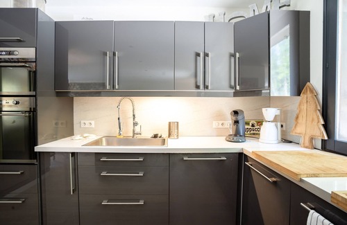 - a fully equipped kitchen with electric kettle, toaster, microwave, oven, hob, dishwasher, Senseo coffee machine...