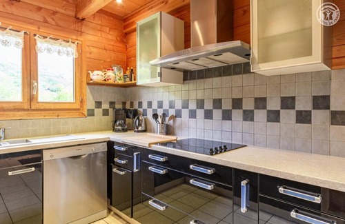 Individual chalet. Ground floor + 1st floor: kitchen corner lounge, Wifi connection, 4 bedrooms (1 bed 2 pers. / 2 beds 1 pers. / 2 beds 1 pers. / 1 bed 2 pers.), mezzanine, bathroom (bathtub), bathroom (shower), 2 WC separated. Terrace + balcony. Land. A carport. Ski des Bottières / area of Sybelles at 500 m. Total floor area: 105 m² parties attic included. Contemporary Chalet located 500 m from the slopes on a well-oriented plateau. Beautiful natural setting of meadows and forests. Very quiet. Very good comfort. Warm mountain stamp. Very cosy. Beautiful outdoor space landscaped with a large wooden terrace. Superb view on the Valley and the mountains.