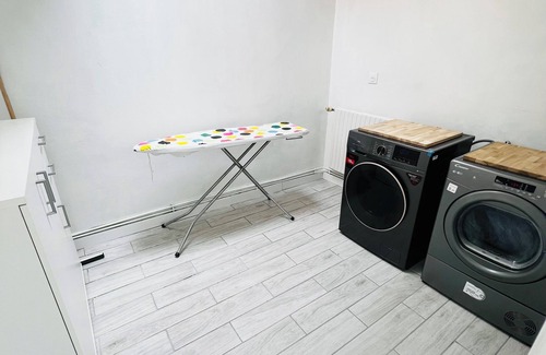 The kitchen is equipped with an oven, a stovetop, and a dishwasher, as well as a coffee maker, an electric kettle, and a microwave. Enjoy the free WiFi and TV. Bathroom amenities include a hair dryer, towels, and toilet paper. And thanks to the washer and dryer, you'll even be able to travel light. Other amenities at this 3-bedroom, 1-bathroom rental include a dining area, bed sheets, an ironing board, and heating.