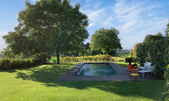 The Cocoonr/Bookandpay agency offers this charming 135 m² air-conditioned house with swimming pool for rent in Blaison-Gohier, which can accommodate up to 10 travelers. It includes a beautiful 80 m² living room (with fireplace), a fully equipped kitchen, five bedrooms, three bathrooms (with shower and bath) and a garden of around 800 m². Wifi included, we're waiting for you!