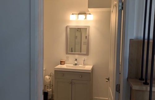 Private entrance, well stocked kitchenette, microwave/convection oven, double bed, large dresser, washer/dryer and bathroom with a large shower. Sheets and towels provided. Fully private.