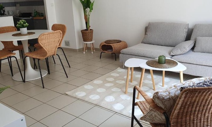 L'Appart' - ADRIAE Home offers accommodations in LʼAiguillon-sur-Mer, 23 miles from Mytiliculture Museum. Both free Wifi and parking on-site are available at the apartment free of charge. Providing a terrace, this apartment also provides guests with a flat-screen TV, a well-equipped kitchenette with an oven, a microwave, and a toaster, as well as 1 bathroom with a bath and a hair dryer. The property has an outdoor dining area. There is an on-site coffee shop, and during warmer months you can make use of the barbecue facilities. You can play mini-golf and tennis at L'Appart' - ADRIAE Home, and the area is popular for canoeing and hiking. Golfing, windsurfing, and fishing are possible within the area, and the accommodation offers water sports facilities. La Rochelle - Île de Ré Airport is 34 miles away.