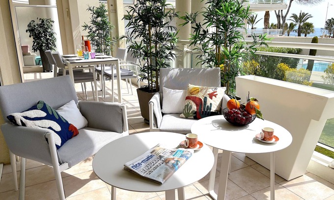 Ideally located facing the sea, with a breathtaking view of the beaches, stay in our beautiful apartment. Decorated with a lot of charm, bright and modern, fully air-conditioned, the apartment offers all the necessary comfort: a beautiful shaded terrace, a large living room with sofa bed, a kitchen, a nice bedroom with a comfortable bed, Internet Wifi, cable TV, and the sunny swimming-pool. You will surely have a wonderful stay in Cannes.