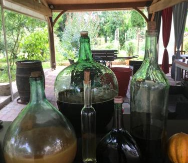 Located in Saint-Aigulin, 14 miles from Lande Golf Course, L'Art Dit Vin provides accommodations with a garden, free private parking, a shared lounge and a terrace. Guests can have a drink at the bar. At the hotel, each room is equipped with a closet and a TV. L'Art Dit Vin has certain rooms with garden views, and the rooms come with an electric tea pot. Buffet and continental breakfast options are available at the accommodation. At L'Art Dit Vin you'll find a restaurant serving French and Local cuisine. Vegetarian, dairy-free and vegan options can also be requested. Guests at the hotel will be able to enjoy activities in and around Saint-Aigulin, like hiking, horse riding and fishing. Bergerac Dordogne Périgord Airport is 46 miles away.