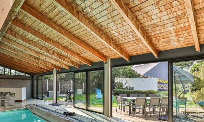 Best-rates for the Challans house starts from $474 per night with includes Designated Smoking Area, TV, Balcony/Terrace, Fireplace/Heating, Barbecue/Outdoor Cooking, Child Friendly, Internet, Kitchen, Private Pool, Entertainment, Pool, Sports/Activities, Wellness Facilities, Guest Services, Laundry with all other amenities. Perfect for Weddings is committed to ensuring every guest experiences a comfortable and extraordinary stay, whether planning a romantic getaway, a honeymoon, a pet-friendly stay, or celebrating with the entire wedding party.