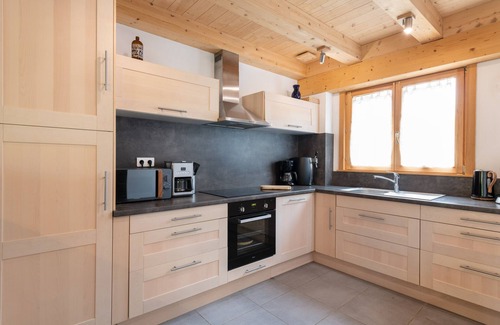 The chalet opens onto a spacious and bright living room with a fully equipped kitchen (oven, microwave, dishwasher, fridge, 2 filter coffee machines, Senseo, kettle, toaster, citrus press, raclette and fondue machines, crockery,...) and opens onto the living room where you can dine for 12-13 people and enjoy the sofa in front of large bay windows offering a magnificent view of the mountains. From this room, you can access the south-facing terrace where you can enjoy a good barbecue or a relaxing moment in the jacuzzi installed out of sight.