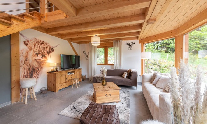 Elegant chalet tastefully decorated and nestled in the village of Liézey, a picturesque Vosges village offering beautiful hiking trails including the famous "trou de l'enfer", and a little further on the Tendon waterfalls.