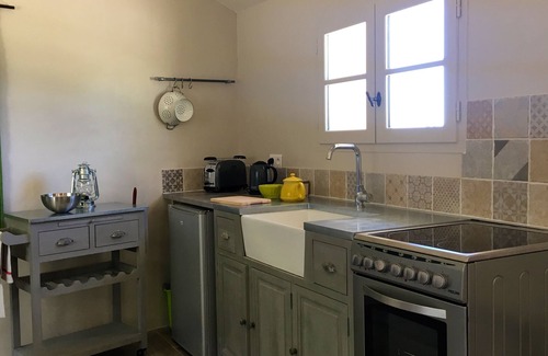 The Ecurie is located in Bonnieux, one of the most beautiful and authentic village in the Luberon. Between vineyards and cherry trees, only 10 minutes walk from the village, it is part of an old farmhouse dating from 1718, while being completely independent. It is 35 m2 and includes a living room with a sofa, a fitted kitchen, a bedroom area with a double bed (160 X 200) and a shower room with wc, and a terrace. Restored with beautiful materials, all associated with harmonious colors and restful, it is completely redone. No nuisance, with beautiful views of the vineyards, Mont Ventoux, and the villages of Lacoste, Roussillon, Gordes and on the other side of a small garden (not accessible). L'Ecurie is ideal for relaxing in the sun and discovering Provence.
