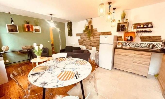 L'edelweiss: three-bedroom hypercentre offers accommodations in Saint-Étienne, 2 miles from Zénith de Saint-Etienne and 2.5 miles from Geoffroy-Guichard Stadium. The property is around a 19-minute walk from Cité du Design, 21 miles from Croix de Montvieux, and 29 miles from Feurs hippodrome. The accommodation provides a concierge service and private check-in and check-out for guests. The apartment features 3 bedrooms, a fully equipped kitchen with an oven and a microwave, a washing machine, and 1 bathroom with a hair dryer. Towels and bed linen are featured in the apartment. A continental breakfast is available daily at L'edelweiss: three-bedroom hypercentre. The nearest airport is Lyon - Saint Exupery Airport, 46 miles from the accommodation.