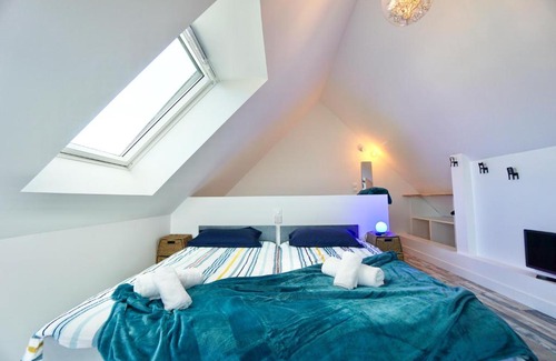 L’Effet Mer*70m de la mer*Prise voiture électrique is located in Ploemeur, just 7.3 miles from Football Club Lorient and 8.2 miles from Lorient Train Station. Both free Wifi and private parking are accessible at the apartment free of charge. There's parking on-site, and the property features an electric vehicle charging station. L’Effet Mer*70m de la mer*Prise voiture électrique features 3 bedrooms, a fully equipped kitchen with a dishwasher and an oven, a washing machine, and 1 bathroom with a hair dryer. Towels and bed linen are offered in the apartment. The accommodation is non-smoking. Popular points of interest near the accommodation include Plage de Pen er Malo, Plage des Kaolins, and Crique des Amoureux Beach. Lorient South Brittany Airport is 2.5 miles from the property.