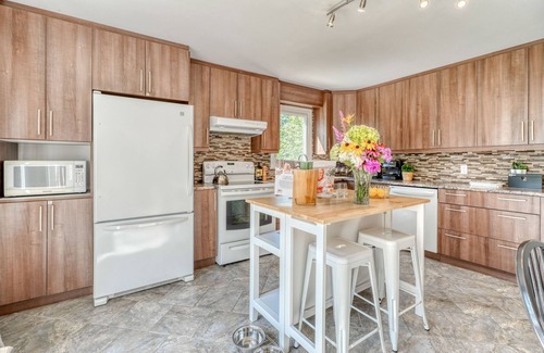 This 2-bedroom, 1-bathroom rental features a living room, a dining area, a BBQ grill, and a fireplace. Bathroom amenities include towels and toilet paper. The kitchen is equipped with an oven, a stovetop, and a refrigerator, as well as a coffee maker, an electric kettle, and a microwave. And thanks to the washer and dryer, you'll even be able to travel light.