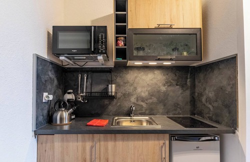 The kitchenette is equipped with everything you need to prepare your meals: electric hob, fridge, oven, microwave and crockery. The view overlooks the picturesque summit of Charmant Som, perfect for waking up to the mountains. All the shops (bakery, butcher's, cheese shop, etc.) are within walking distance, and the bus stop is less than 5 minutes away.