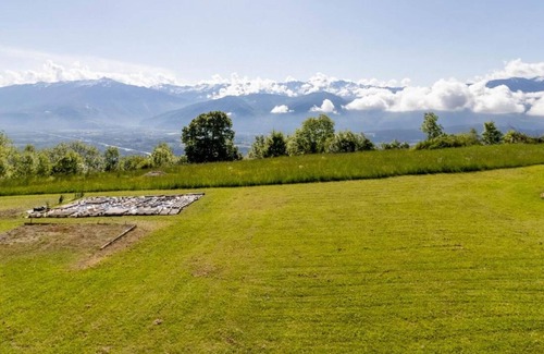 Access to the property via a narrow municipal road for 6.5 km then a stone-paved driveway, parking on the property (2 spaces). Gîte on the 1st floor of a renovated old barn (access via an internal stone staircase) where the farm workshop is located: Living room-kitchen with large covered terrace (35 m2) on the same level as the living room, 2 bedrooms (1 double bed 160x200 cm / 2 single bunk beds 90x190 cm), bathroom (shower), toilet, laundry room. Large unfenced grounds available. Perched high above the Combe de Savoie, Envol Safrané takes its name from two of the area's distinctive features: Frédéric's saffron-growing farm and the nearby paragliding launch pad. From the gîte's vast, sheltered terrace, enjoy incredible views of the valley and the Belledonne massif, located in a peaceful hamlet with no through traffic.