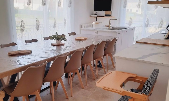 L'escale de la Sélune - Gîte for 13 people in the Bay of Mont-Saint-Michel has 5 Bedrooms , 3 Bathrooms, and max occupancy of 13 people. The minimum rental for this property is 1 nights, but this can change depending on the season you plan on staying. Previous guests have given good rated it, and VRBO labeled it a top-rated House because of the excellent services rendered by the owner or manager of this House, and has consistently provided great experiences for their guests. Most families or guests that use it recommend it to their friends and some of them are repeat guests. House has a friendly neighborhood, and the Ducey has interesting places to visit. If you want to learn more about the House in Ducey, such as places to visit and things to do nearby, you can check below to learn more.