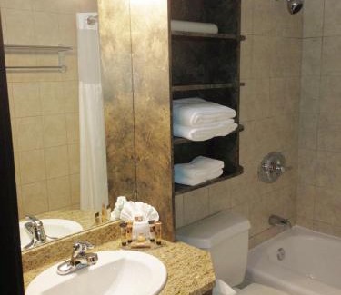 L'Escale Hôtel Suites, located in Val D’Or, Québec, features an on-site restaurant and bar. All guest rooms offer the convenience of a mini-fridge and coffee maker. Satellite TV and pay-per-view movies are available in all rooms at L'Escale Hôtel Suites Val D'Or. Free Wi-Fi and free local calls are included. Suites are equipped with a living area and small dining area. The on-site Le Canon Restaurant serves breakfast, lunch and dinner. Regional cuisine is showcased on the menu. In the evening, guests can enjoy a drink at the Bar - Club Lounge. L'Escale Hôtel Suites is 0.6 mi from Club de Golf Belvédère golf course and 3.1 mi from cross-country skiing opportunities at Club de Ski de Fond de Val d'Or. Cité de L'Or, a historic gold mining site, is 3.1 mi away.