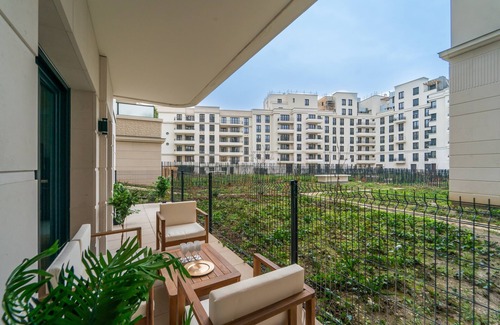 The apartment is ideally located in Saint-Ouen, in a pleasant new residential neighborhood close to Paris. Just 6 minutes from metro line 14, providing access to the heart of Paris in 15 minutes. Close to the Olympic Village and the Stade de France. Located in the heart of the Saint-Ouen eco-neighborhood, you'll benefit from all the essential shops nearby (4 supermarkets between 1 and 10 minutes' walk), the largest food court in Ile de France within 8 minutes' walk, organic markets, butchers, cheesemongers, and the Puces de Saint Ouen within 15 minutes' walk.
