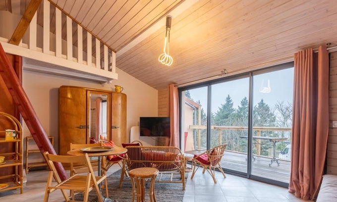 Immerse yourself in a world where comfort and modernity meet in this brand new studio, located in the charming village of Le Crest. Designed for 2 people, this warm and functional cocoon invites you to a peaceful interlude in the heart of Puy-de-Dôme. Ideally located, this studio offers a clear view from its private terrace, perfect for enjoying a sunny breakfast or relaxing at sunset. The owners, living opposite, will be at your disposal to make your stay even more enjoyable and share their advice for discovering the region. Located just a few minutes from Clermont-Ferrand and the great natural sites, this studio is an ideal starting point for exploring the department. The studio is composed on a single level (access by 5 external steps): - a living room with: * equipped kitchen area * lounge area * sleeping area with comfortable BZ - a shower room/WC An additional bed possible on the mezzanine Electrical outlet for rechargeable vehicles