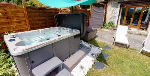 26 miles from Walibi Rhone-Alpes in La Burbanche, L'Horizon & SPA features accommodations with access to a hot tub, spa facilities, and open-air bath. Offering a garden, the property is located within 28 miles of Abbaye d'Hautecombe. There's a picnic area and guests can use free Wifi and free private parking. Featuring a terrace and mountain views, the vacation home includes 1 bedroom, a living room, flat-screen TV, an equipped kitchen, and 1 bathroom with a hot tub and a shower. Towels and bed linen are available in the vacation home. There's also a seating area and a fireplace. There is an on-site coffee shop, and during warmer months you can make use of the barbecue facilities. For guests with children, the vacation home offers outdoor play equipment and a baby safety gate. A casino is available on-site, and both fishing and hiking can be enjoyed close to L'Horizon & SPA. Chambéry-Savoie Airport is 30 miles from the property.