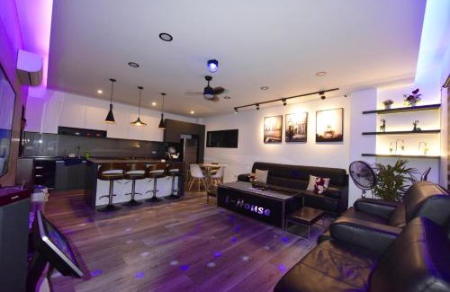Providing a garden, L-House時尚包棟會館 features accommodations in Luodong. This property offers access to a terrace, free private parking, and free Wifi. The accommodation provides an elevator and a shared kitchen for guests. This air-conditioned 5-bedroom villa comes with a dining area, a cable flat-screen TV, and a fully equipped kitchen with a dishwasher. Towels and bed linen are featured in the villa. This villa is non-smoking and soundproof. During warmer months, you can make use of the barbecue facilities and eat on the private balcony. The villa has a picnic area where you can spend the day outdoors. Luodong Train Station is 1.1 miles from the villa, while Jiaoxi Railway Station is 14 miles away. The nearest airport is Taipei Songshan Airport, 37 miles from L-House時尚包棟會館.