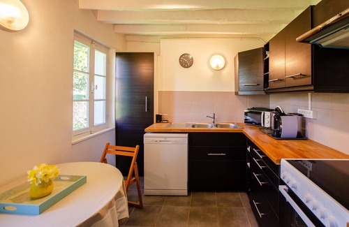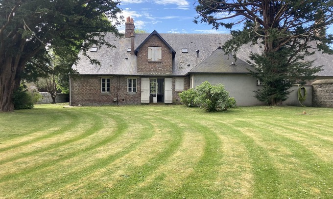 The flat occupies part of the ground floor of this beautiful house, which is used as a holiday home by a discreet owner. It has its own private, secluded garden, opposite the owner's garden on the other side of the house. The dwelling is very luminous, with numerous windows. A beautiful entrance hall opens onto the garden and leads to a large, comfortable living room, a small bedroom with 2 joinable single beds (80 x 200 cm), for one adult or two children; and a well-equipped kitchen (oven, ceramic hob, fridge/freezer, dishwasher, microwave, etc.) that doubles as a dining room. A corridor leads to the large bedroom (double bed 160 x 190 cm) and bathroom (bath/shower, washbasin and WC (washing machine dryer). The elegant decor and large, walled garden with garden furniture create a lovely atmosphere.Several valleys lead down to the sea and Varengeville beach, with its breathtaking cliffs. At the end of the street, a 5-minute walk takes you down a steep path to the Moutiers gorge. The village centre can also be reached on foot via a lovely walk along one of the most beautiful streets in the village.