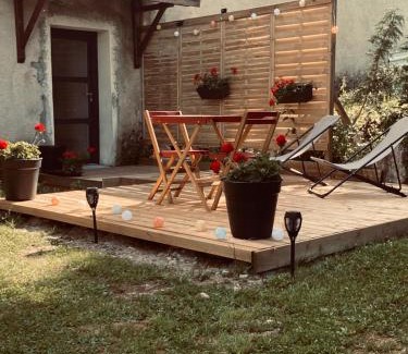 L'instant présent in Echallon provides adults-only accommodations with massage services and a garden. Housed in a building dating back to 18th century, this apartment provides free Wifi and free private parking. Featuring a private entrance, the apartment allows guests their privacy. Guests can stay warm with a fireplace in every unit. Accommodation includes a terrace with garden views, a fully equipped kitchen, an outdoor dining area, and a private bathroom with shower. At the apartment complex, all units are fitted with bed linen and towels. CERN is 31 miles from the apartment, while European Council for Nuclear Research is 31 miles away.