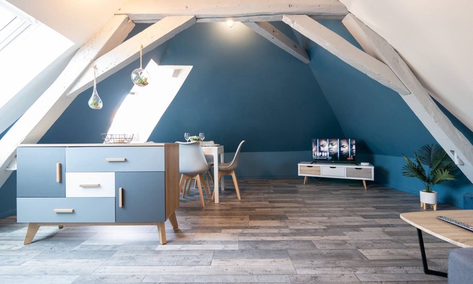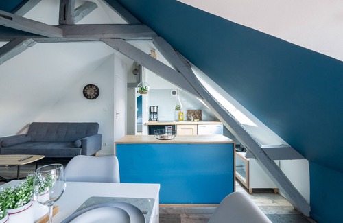 The Iris Elegance and Comfort in the Heart of Le MansWelcome to L'Iris, a refined urban interlude in a bright and recently renovated apartment, ideally located in the immediate vicinity of downtown Le Mans.Designed for comfort and serenity, this attic apartment welcomes you to a cozy universe, just steps away from transportation, shops, restaurants, and other local amenities. Whether you are on a business trip or a relaxation stay, L'Iris will meet all your expectations. A modern, practical, and warm spaceThe apartment consists of:A double bed room with integrated storage spacesA fully equipped kitchen (stove, microwave, utensils, coffee maker...)A living room with a sofa bed, ideal for a moment of rest or an additional guestA contemporary bathroom with shower, sink and toilet Bed linen and towels provided for a light and comfortable stay. Private access to the entire accommodation. A privileged locationEnjoy your direct proximity to the city center, accessible on foot or via public transportation, to discover the historical and cultural charms of Le Mans. High-end services by Rêve au MansEnjoy a personalized experience with our 24/7 concierge service, which offers you a range of custom services:• Breakfast delivery• Private driver• Catering Reservation• Floral Services• Rental of various equipment• Grocery shopping and delivery• And much more... House Rules• Prohibited Parties (subject to partial or total seizure of the deposit)• Non-smoking accommodation only• Presence of noise, smoke, and motion sensors• Mandatory caution by bank pre-authorization or insuranceBook L'Iris now and let Rêve au Mans elevate your stay with exceptional service, in a setting that is both functional and elegant.