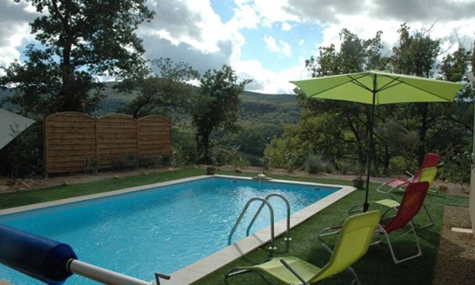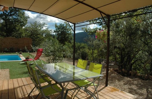 600 m from the Sainte Croix Lake, contemporary House in the heights, in the countryside, with mountain views. Grounds, shaded terrace with garden furniture, plancha. Private swimming pool (4x8x1.2m, open from May to September) secured by alarm, sunbathing. Nautical activities in the Lake. Ideal relaxation and leisure. 1 animal accepted. Table linen provided free. Parking. Ground floor: fully equipped kitchen. 1 bedroom 1 bed 2 place, 1 bedroom 2 beds 1 place. Bathroom with towel. WC. electric heating.