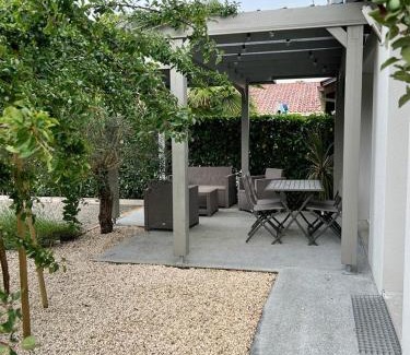 31 miles from Dax Train Station, the vacation home offers a garden and a terrace. The vacation home provides free Wifi and free private parking. The air-conditioned vacation home consists of 1 bedroom, a living room, a fully equipped kitchen with a dishwasher and a coffee machine, and 1 bathroom with a walk-in shower and a hair dryer. Guests can enjoy a meal on an outdoor dining area while overlooking the garden views. For added privacy, the accommodation has a private entrance and soundproofing. Biarritz Airport is 58 miles away.