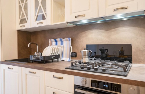 As you enter L'onda del Mare - Marina Seaview Panoramic Loft, you're greeted by a spacious and inviting living room, complete with a comfortable sofabed perfect for relaxation or hosting additional guests. This room seamlessly flows into the newly renovated kitchen, a culinary dream with modern appliances and ample space for cooking and socializing.