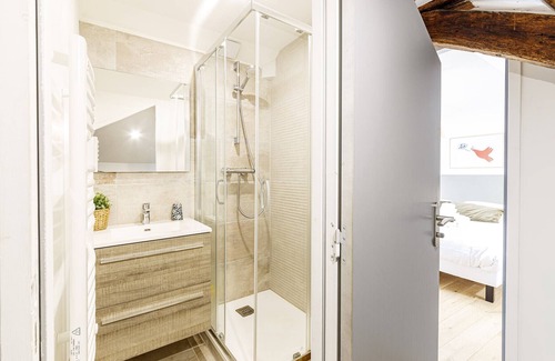 🔹 Shower room : shower, storage space, towel dryer, hairdryer