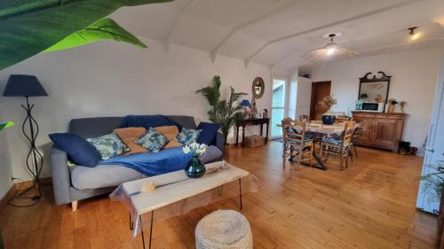 Featuring a garden, L'orée du bois features accommodations in Hennebont. Both free Wifi and parking on-site are available at the vacation home free of charge. The accommodation provides a shared kitchen and a shared lounge for guests. Providing a terrace and garden views, the vacation home includes 2 bedrooms, a living room, cable flat-screen TV, an equipped kitchen, and 1 bathroom with a shower. Towels and bed linen are featured in the vacation home. The property has an outdoor dining area. A water park is available on-site, and both cycling and walking tours can be enjoyed close to L'orée du bois. Parc des Expositions Lorient is 6.7 miles from the accommodation, while Lorient Train Station is 8.7 miles away. Lorient South Brittany Airport is 12 miles from the property.