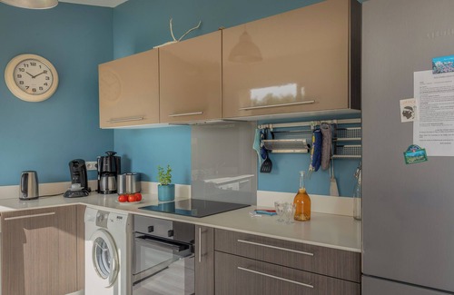 Inside, a spacious, bright, and welcoming living area awaits you: a large cozy lounge, a friendly dining space, and a modern fully equipped kitchen (dishwasher, induction cooktop, refrigerator, drip coffee maker, and Senseo machine).