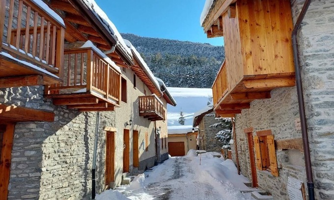 Terraced house. Ground floor: living room kitchen (1 bed 1 p.), 1 bedroom (1 bed), bathroom (bathtub), small garden. Linens provided. Ski area Val Cenis Vanoise 6 km, 9 km Norma. Ancient renovated house located in the heart of the village. Typical hamlet of Maurienne. Very quiet. Beautiful vaulted living room. Decoration. Cottage warm and pleasant. Small patio access with garden located across the lane furniture.