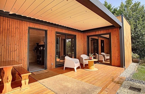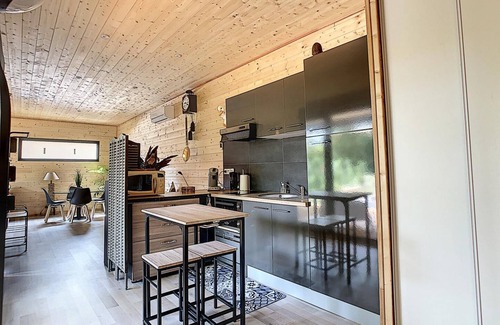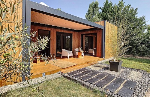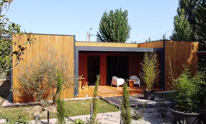 L'Oustal de la Mane d'Auta is a detached wooden house located on a property that also includes a renovated farmhouse occupied by a second gîte and a year-round rental. A parking area is reserved in the courtyard. The gîte is not overlooked and overlooks the wooded and flowered garden. The owners live nearby. Garden furniture, a relaxation area, and deckchairs are available. Pets are not allowed. Ideal for a vacation exploring the Toulouse region and the Lauragais region, for cycle tourists roaming along the canal (bicycle storage available), for people traveling for business or looking to work remotely, this gîte has everything to delight you! 1 km from the center of Ayguesvives, you will enjoy a calm and relaxing environment, while being close to shops and services. The Canal du Midi (Ayguesvives lock) and its cycle path are 3.2 km away (the Sanglier lock is 3.7 km away), and Toulouse is 27 km away (a bus service runs from the village to Toulouse). This very bright cottage is laid out on one level (the cottage is designed in a U-shape around its bioclimatic terrace): entrance to the office area and open kitchen, living room in one wing of the U-shape with dining area and lounge (sofa bed). The other wing of the U-shape houses the bedroom (1 double bed 160x200cm) and the bathroom/WC. Reversible air conditioning. Wi-Fi internet connection (fiber). Non-smoking cottage.